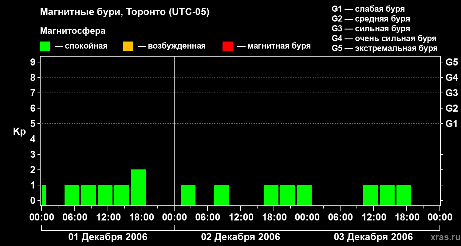 Изменения геомагнитного индекса Kp с 1 по 3 декабря 2006 года для средних широт