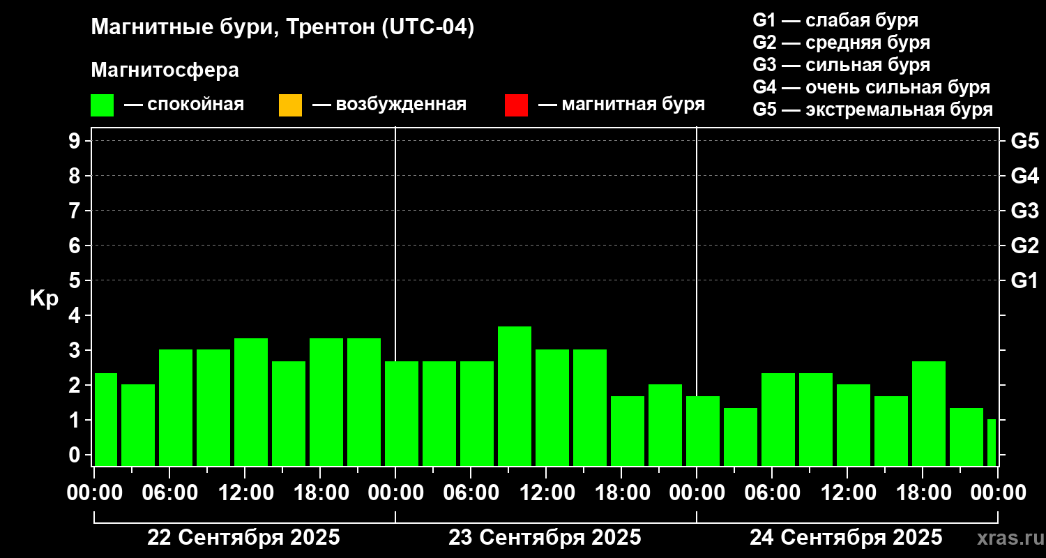 Магнитные бури в Трентоне 24 сентября 2025 года