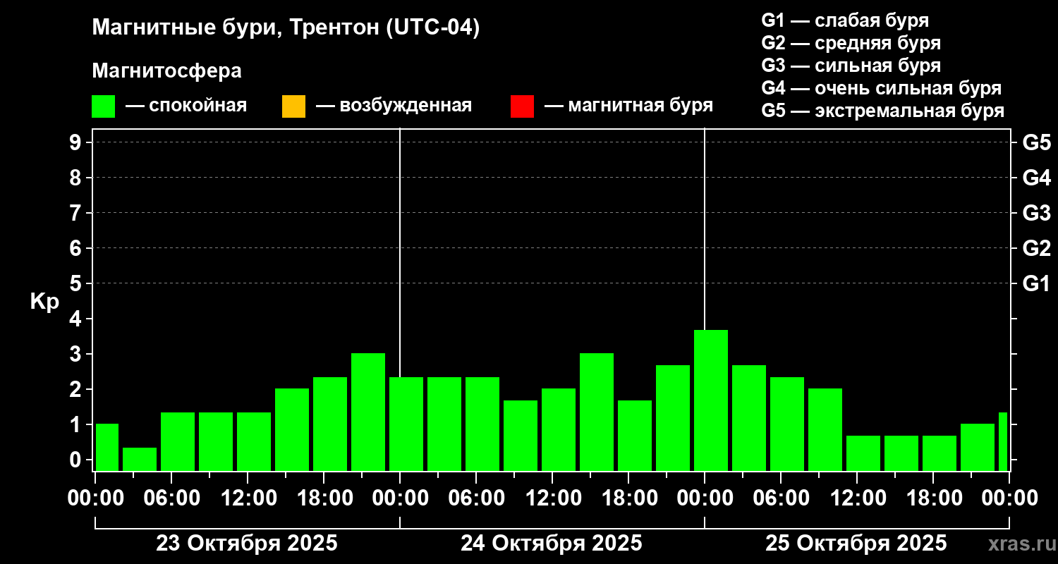 Магнитные бури в Трентоне 25 октября 2025 года