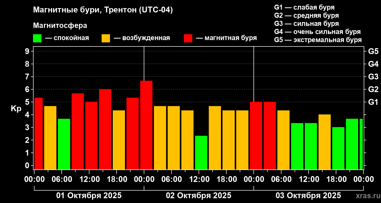 Магнитные бури в Трентоне — 3 октября 2025 года