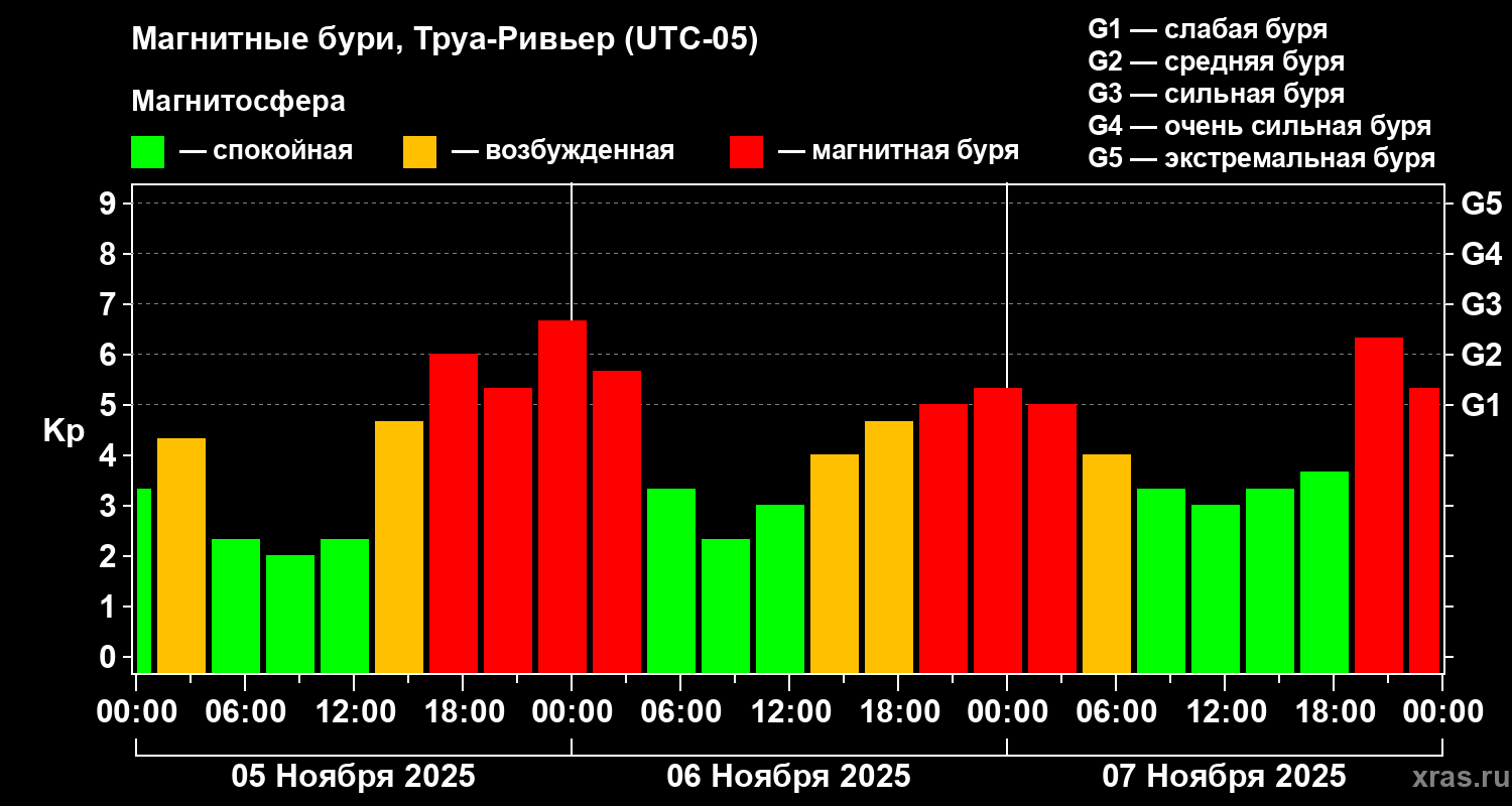 Магнитные бури в Труа-Ривьере 7 ноября 2025 года