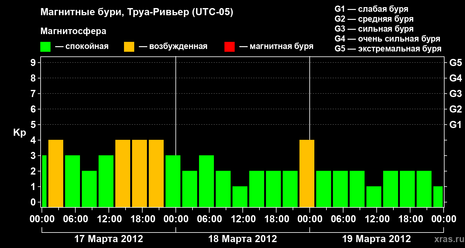 Магнитные бури в Труа-Ривьере — 19 марта 2012 года