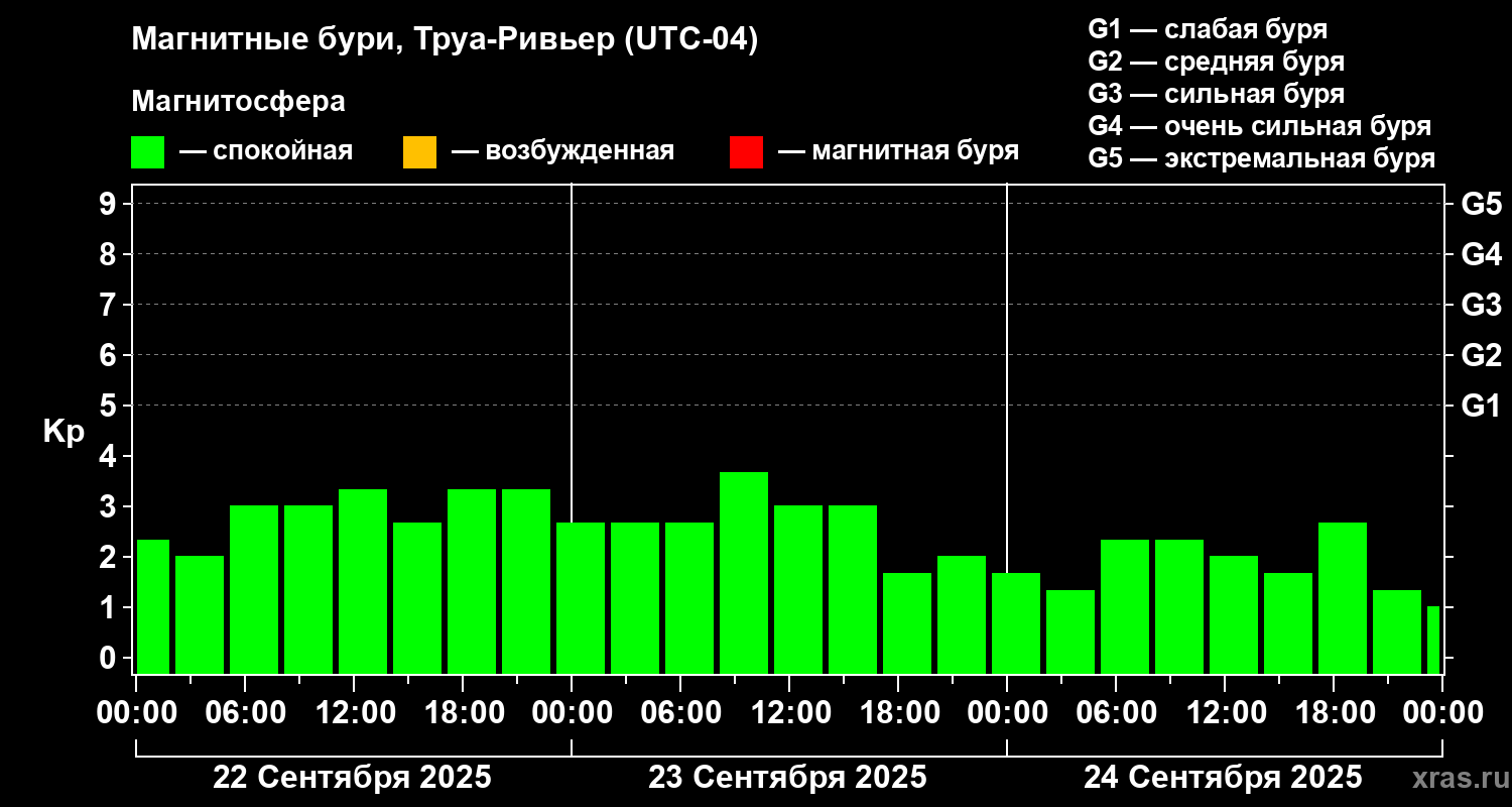 Магнитные бури в Труа-Ривьере 24 сентября 2025 года