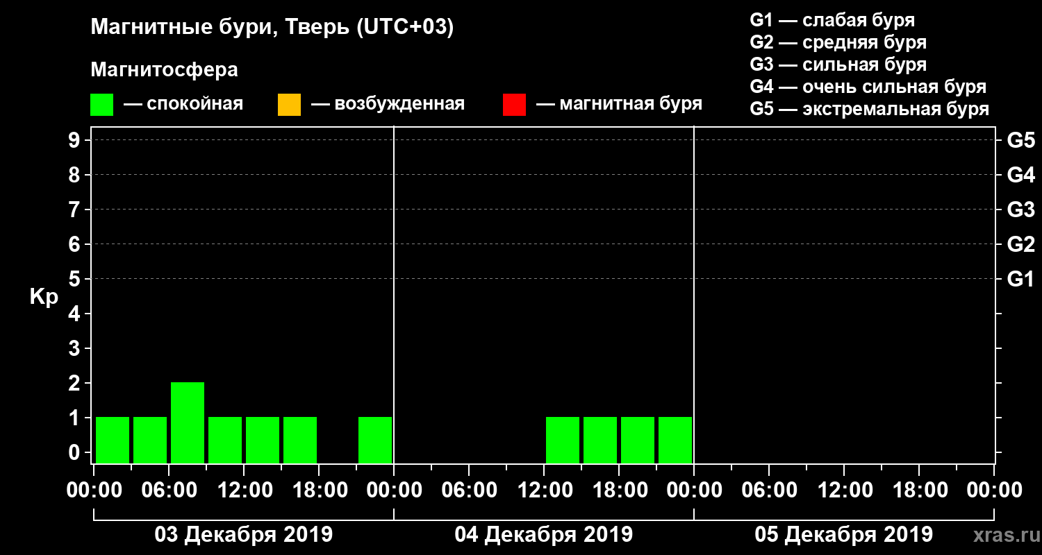 Изменения геомагнитного индекса Kp с 3 по 5 декабря 2019 года для средних широт