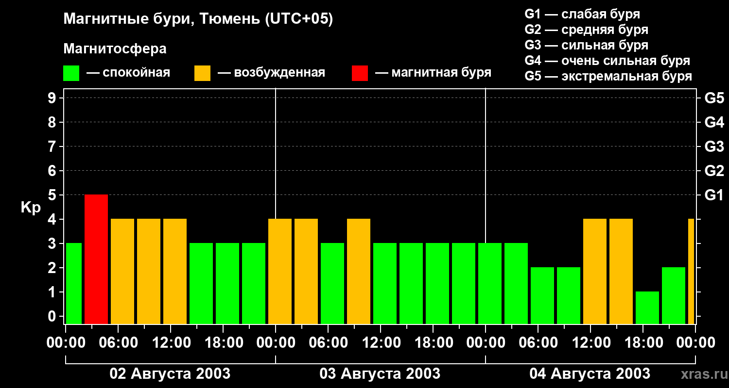 Магнитные бури Тюмени 4 августа 2003 года