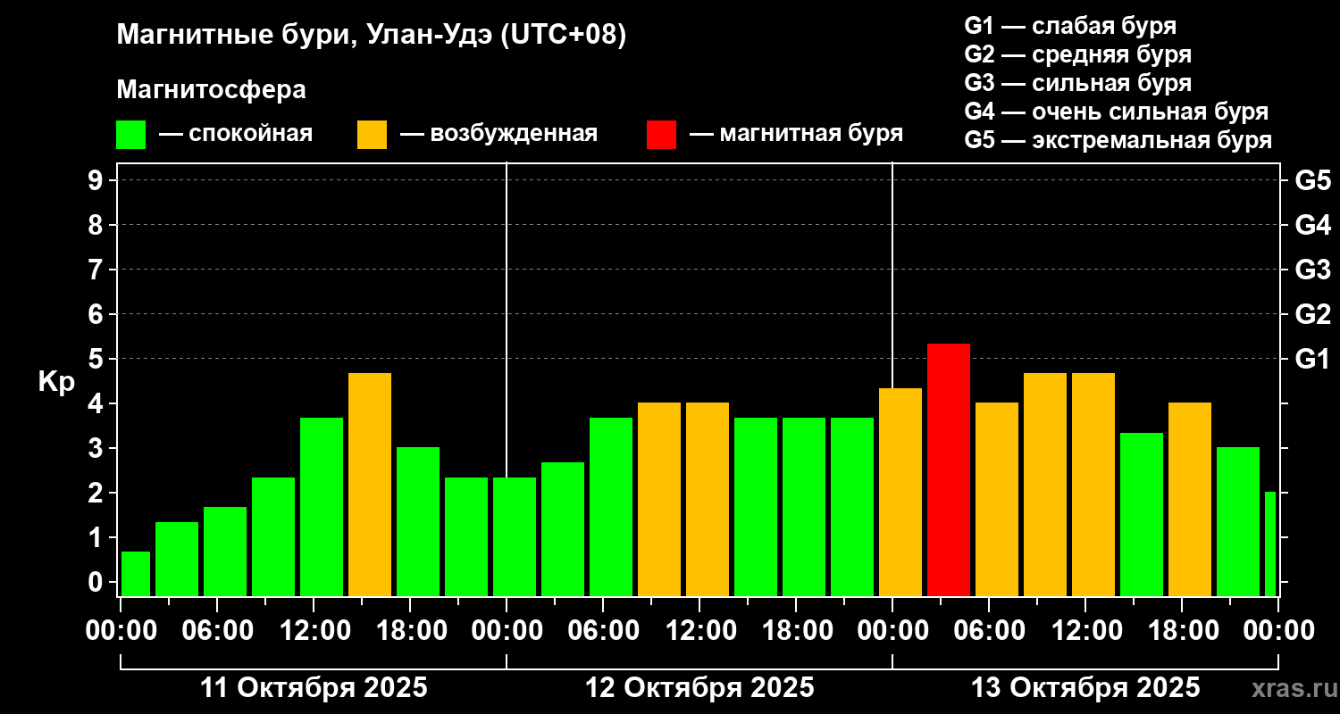 Магнитные бури Улан-Удэ 13 октября 2025 года