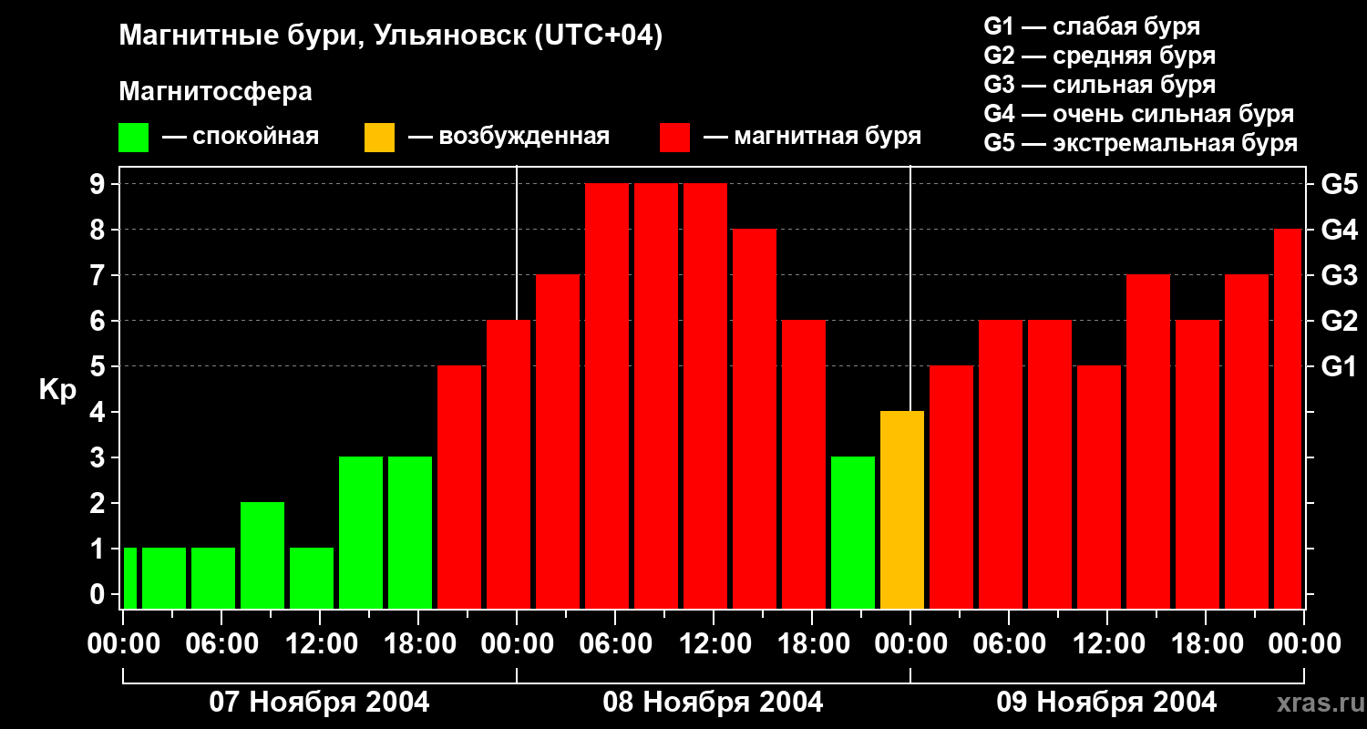 Магнитные бури в Ульяновске — 9 ноября 2004 года