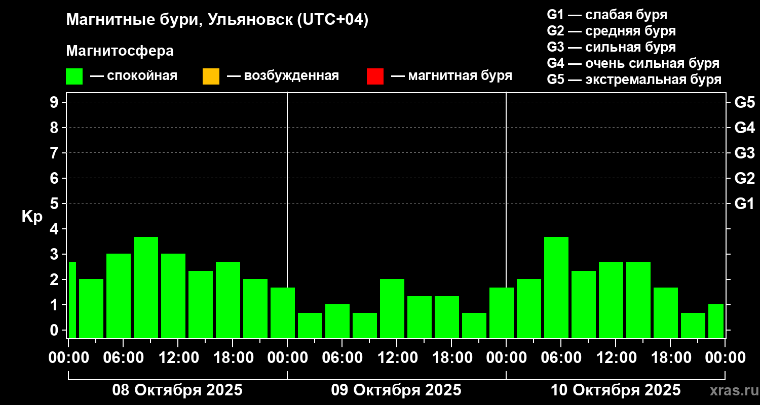 Магнитные бури в Ульяновске — 10 октября 2025 года