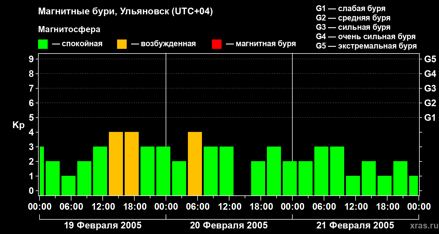 Магнитные бури в Ульяновске — 21 февраля 2005 года