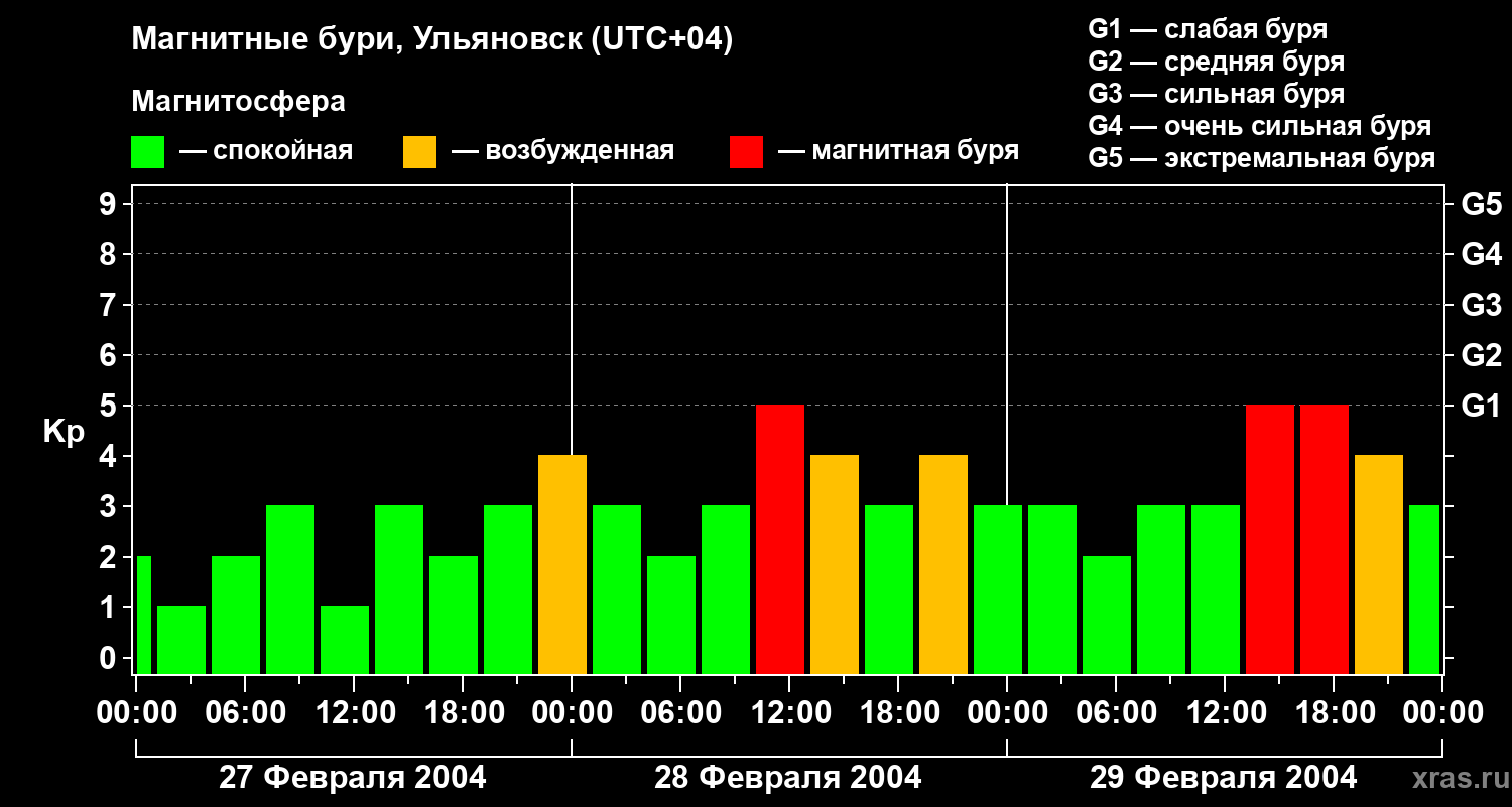 Магнитные бури в Ульяновске — 29 февраля 2004 года