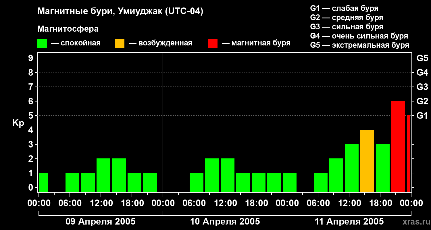 Магнитные бури в Умиуджаке — 11 апреля 2005 года