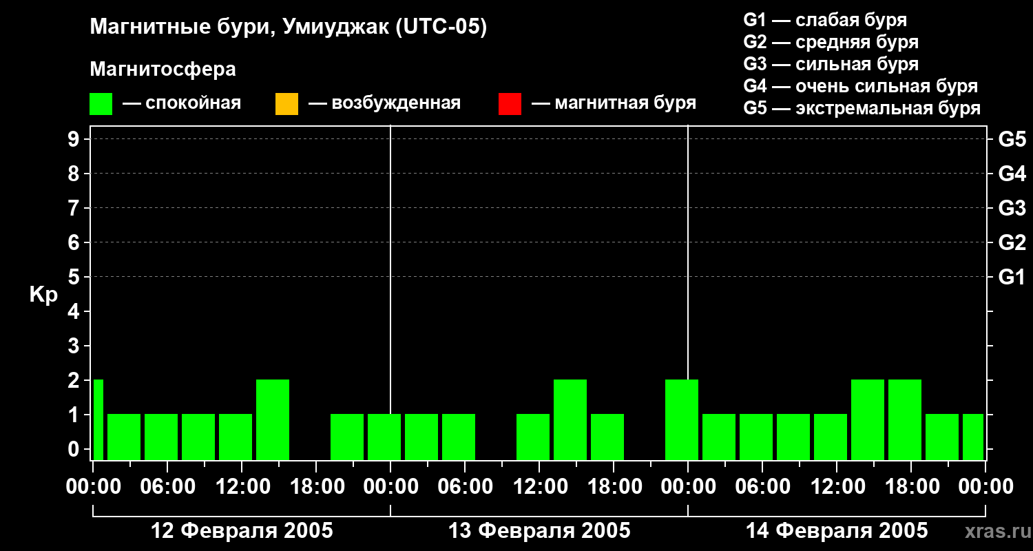 Магнитные бури в Умиуджаке — 14 февраля 2005 года