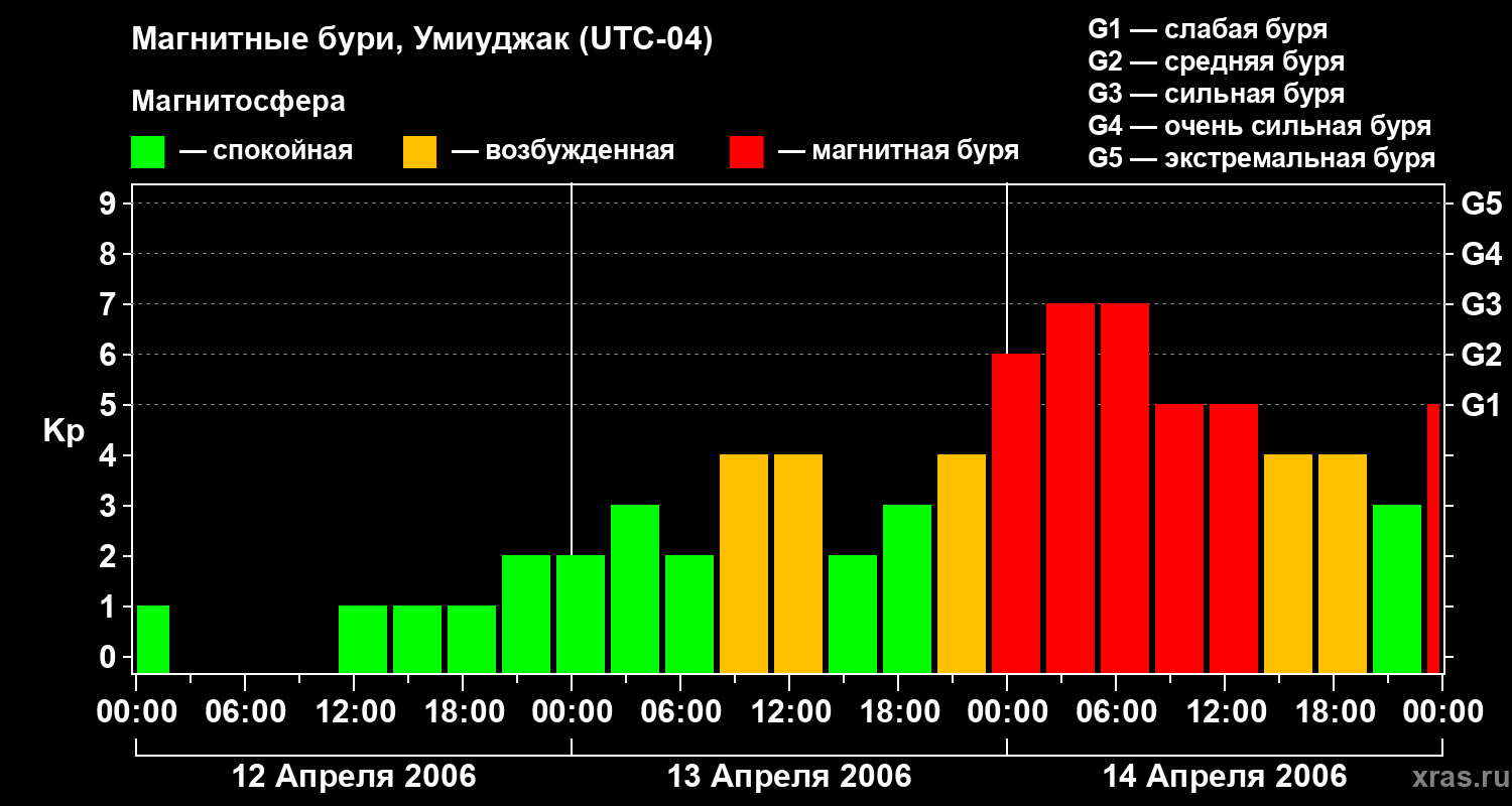 Магнитные бури в Умиуджаке — 14 апреля 2006 года