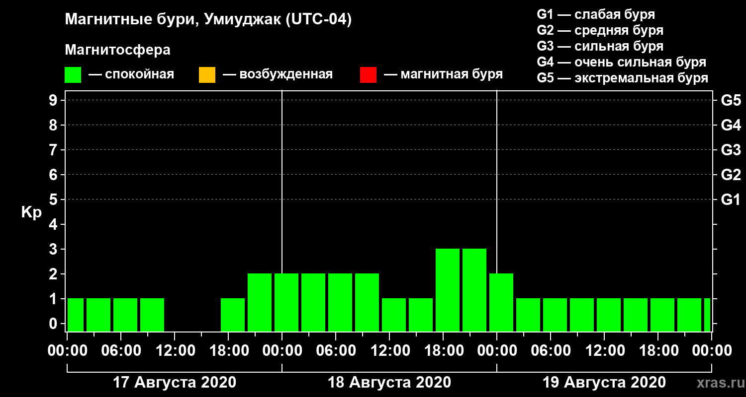 Магнитные бури в Умиуджаке — 19 августа 2020 года