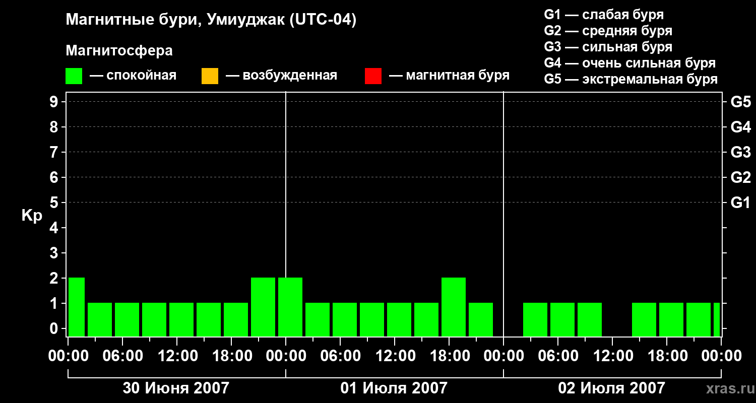 Магнитные бури в Умиуджаке — 2 июля 2007 года
