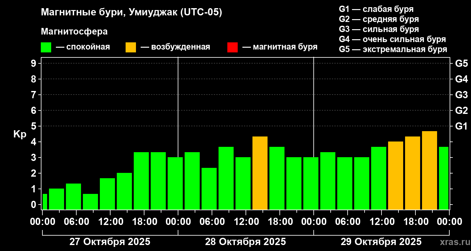 Магнитные бури в Умиуджаке 29 октября 2025 года