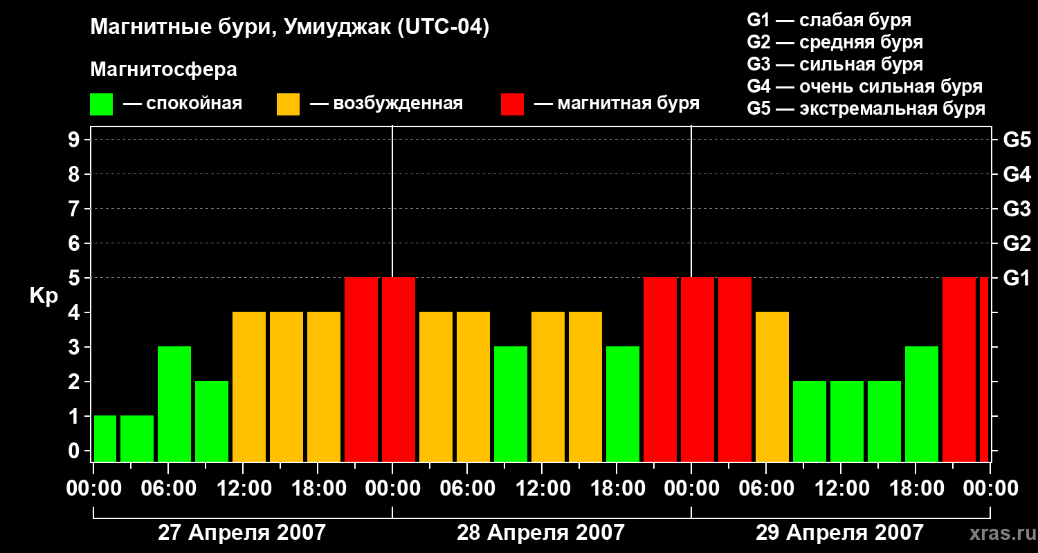 Магнитные бури в Умиуджаке — 29 апреля 2007 года
