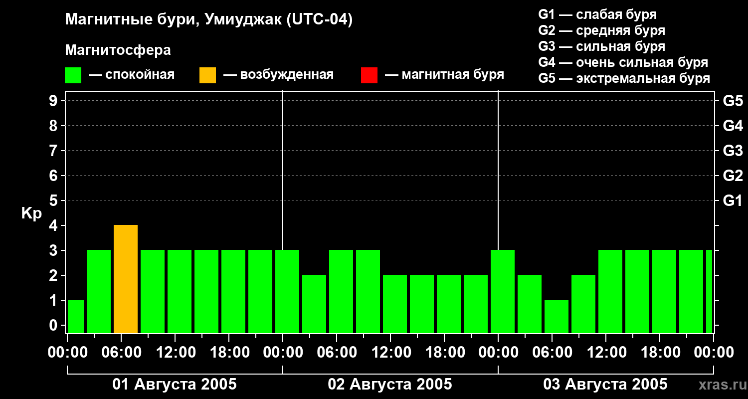 Магнитные бури в Умиуджаке — 3 августа 2005 года