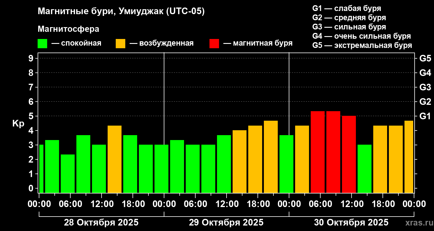 Магнитные бури в Умиуджаке 30 октября 2025 года