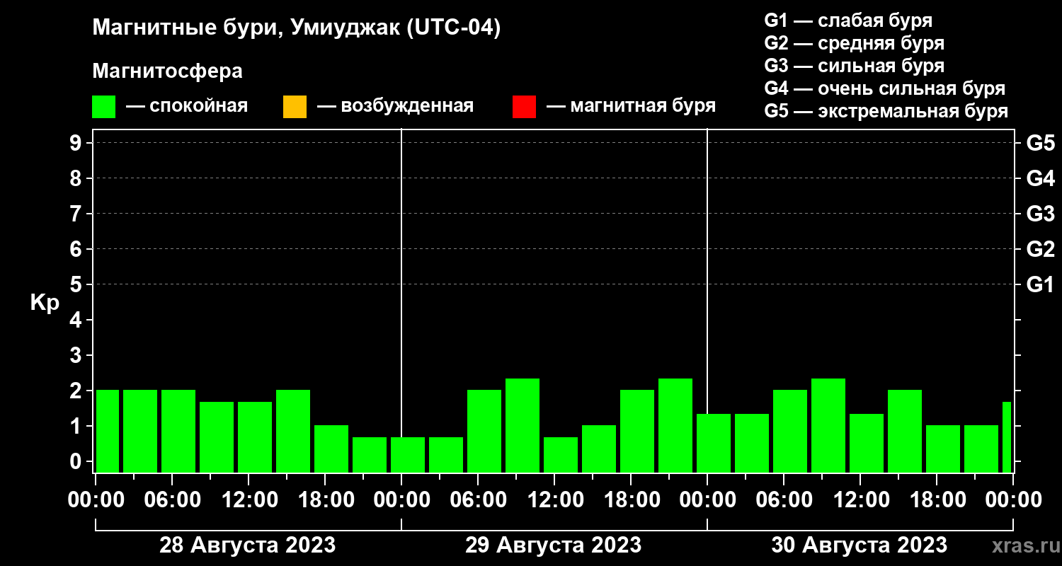 Магнитные бури в Умиуджаке 30 августа 2023 года