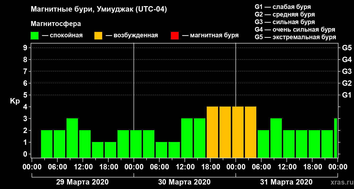 Магнитные бури в Умиуджаке 31 марта 2020 года