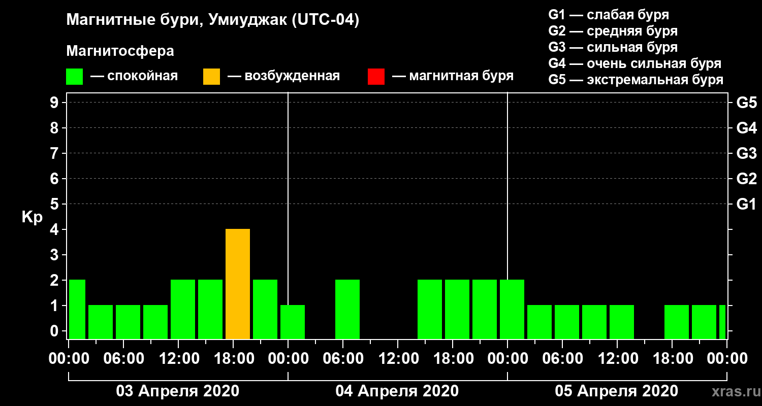 Магнитные бури в Умиуджаке — 5 апреля 2020 года