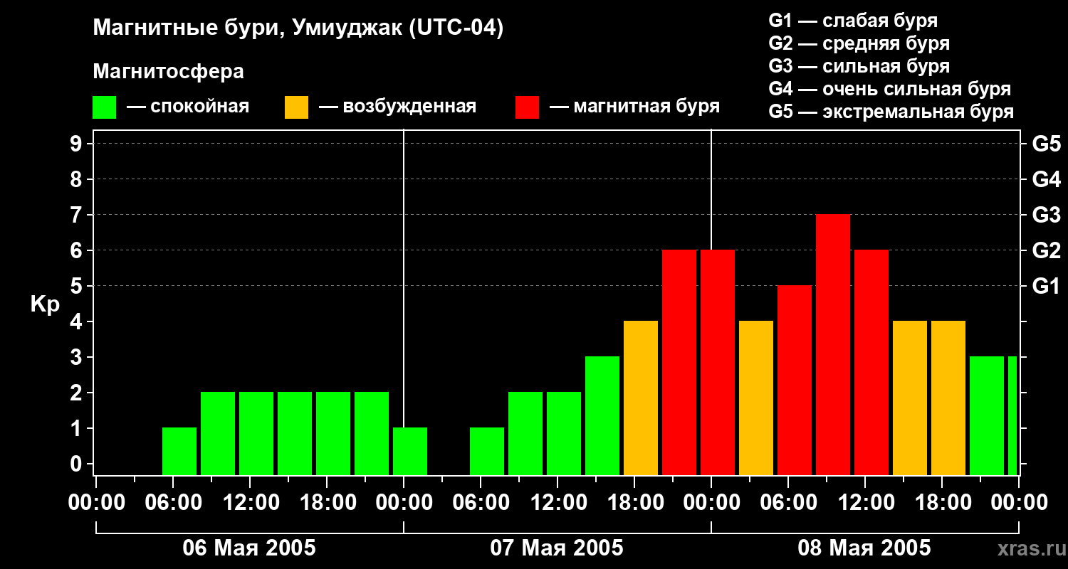 Магнитные бури в Умиуджаке — 8 мая 2005 года