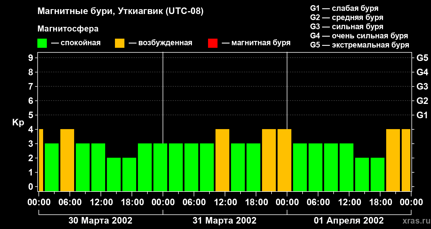 Магнитные бури в Уткиагвике — 1 апреля 2002 года