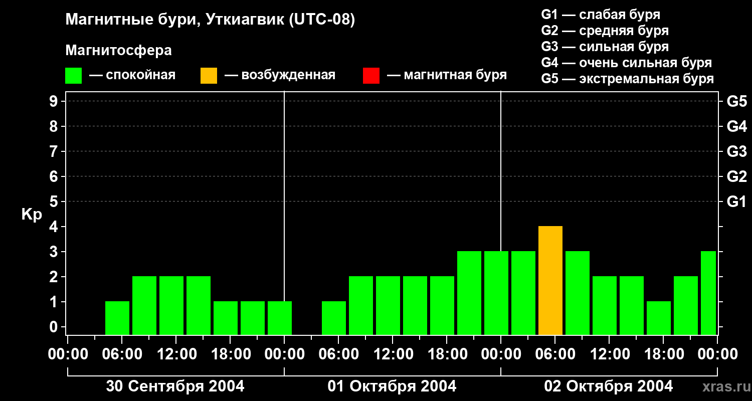 Магнитные бури в Уткиагвике — 2 октября 2004 года