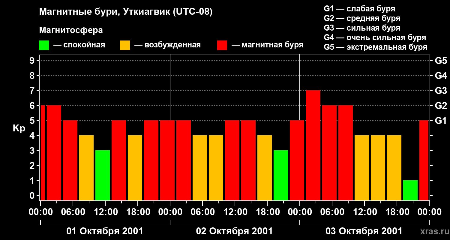 Магнитные бури в Уткиагвике — 3 октября 2001 года