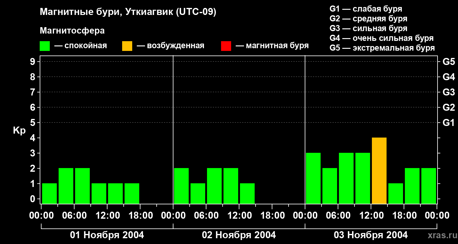 Магнитные бури в Уткиагвике — 3 ноября 2004 года