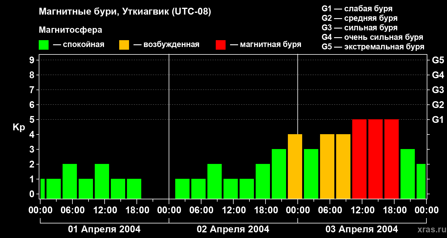 Магнитные бури в Уткиагвике — 3 апреля 2004 года