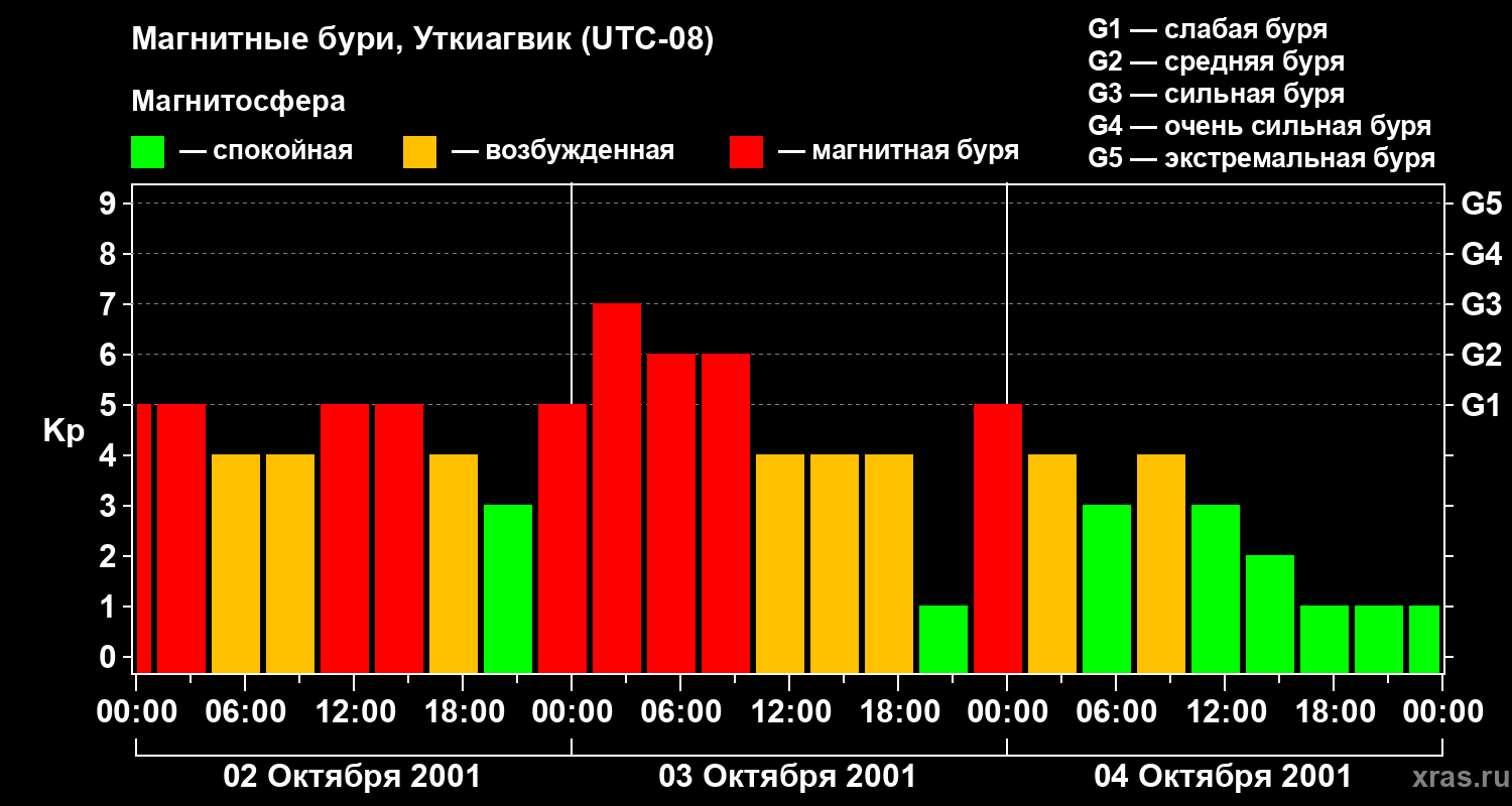 Магнитные бури в Уткиагвике — 4 октября 2001 года