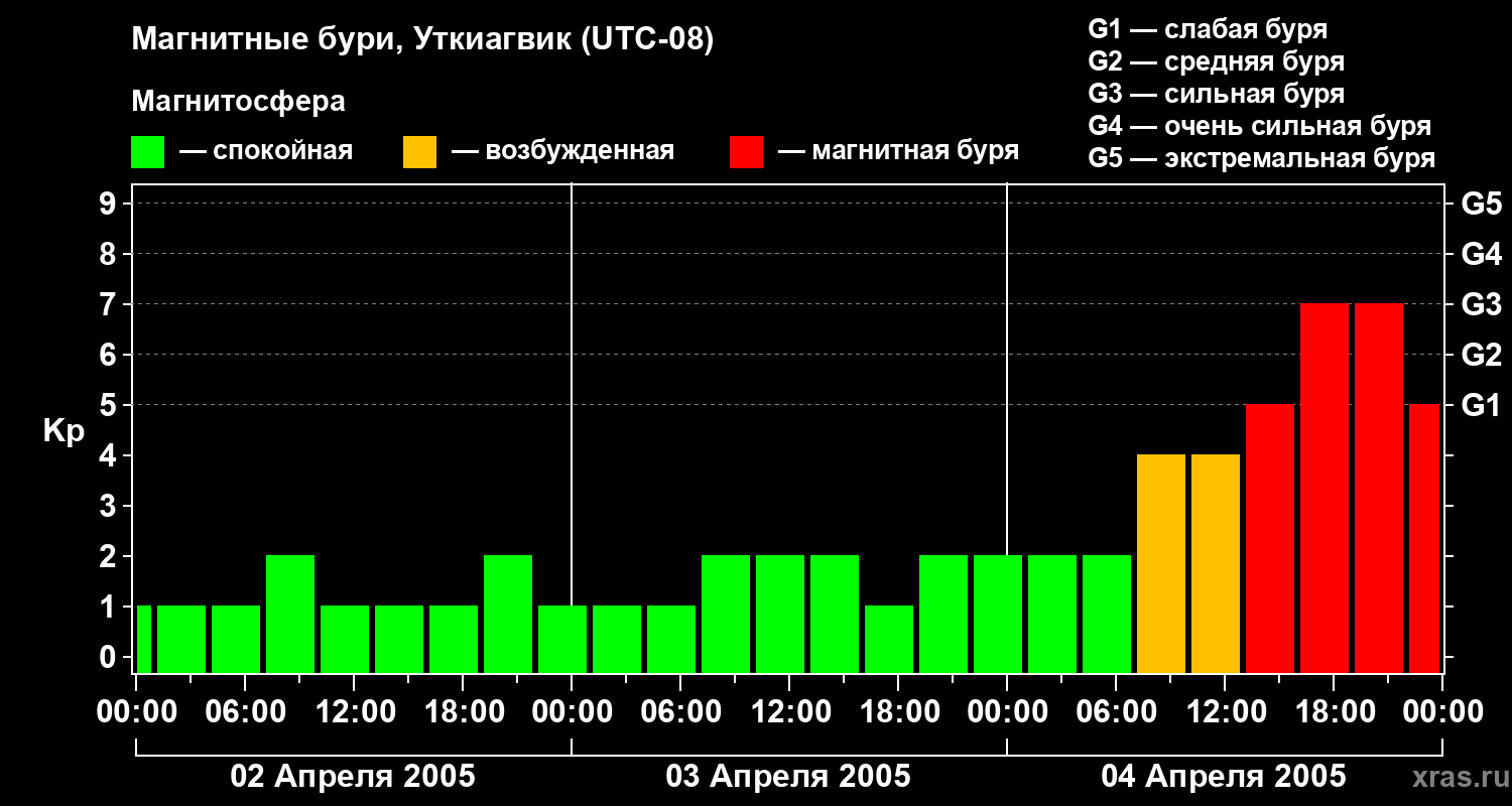 Магнитные бури в Уткиагвике 4 апреля 2005 года