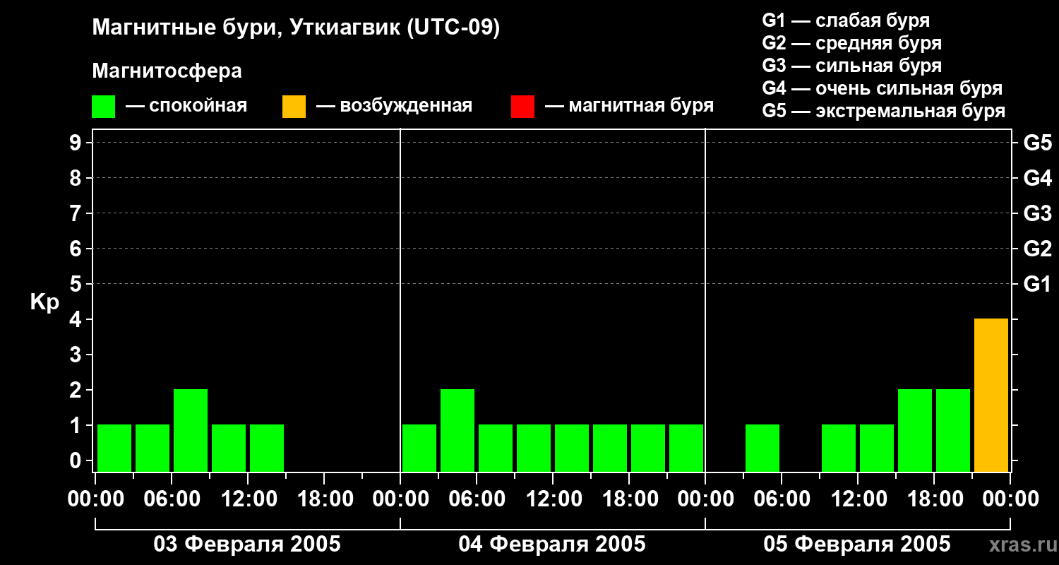 Магнитные бури в Уткиагвике — 5 февраля 2005 года
