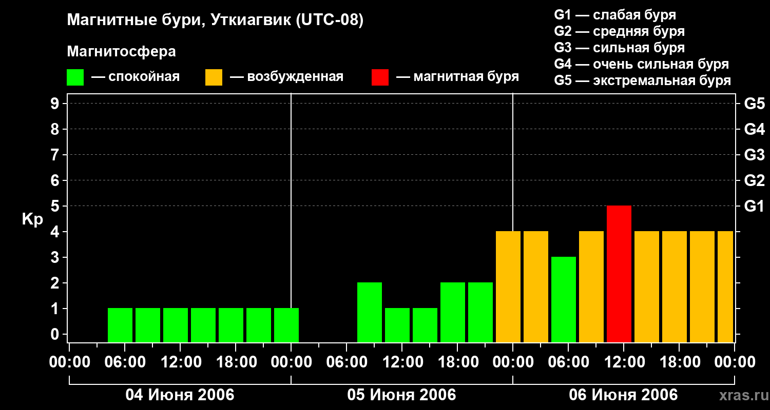 Магнитные бури в Уткиагвике 6 июня 2006 года