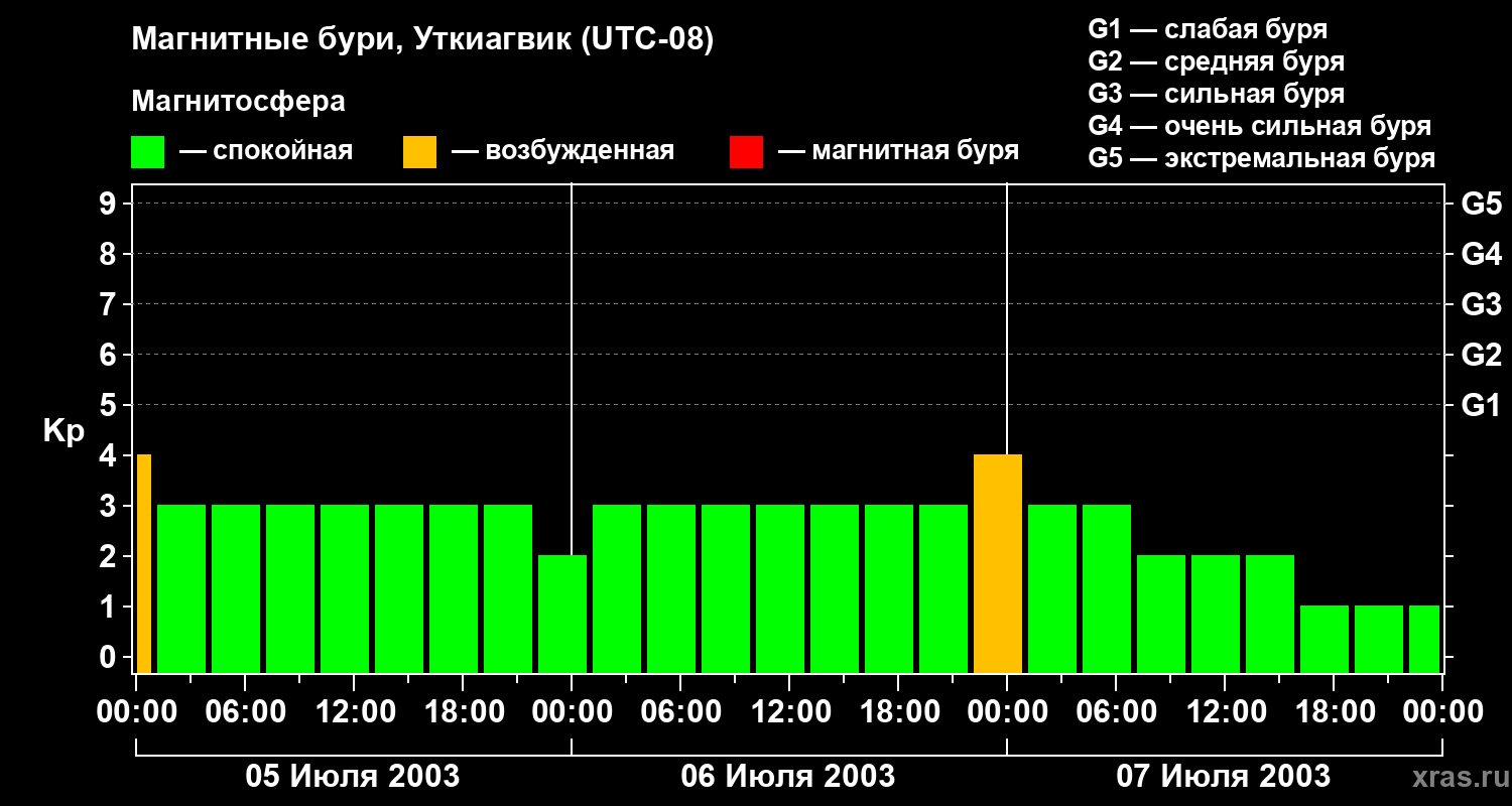 Магнитные бури в Уткиагвике — 7 июля 2003 года