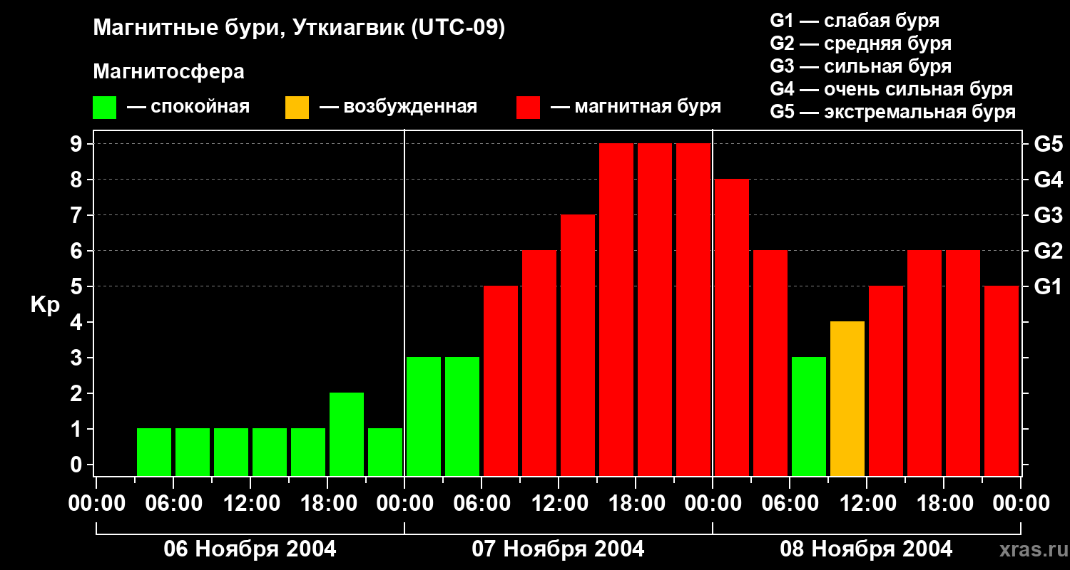 Магнитные бури в Уткиагвике — 8 ноября 2004 года