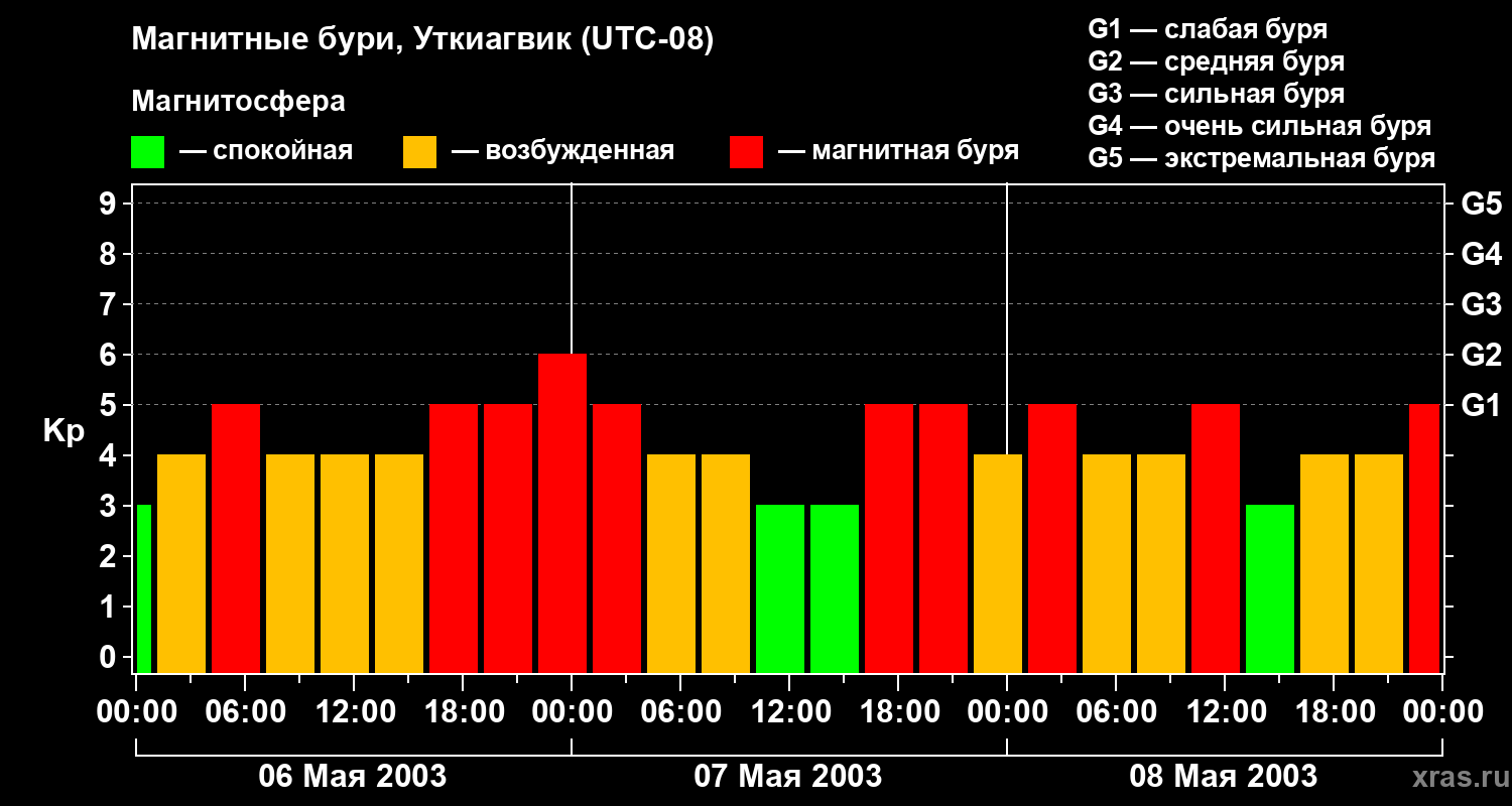 Магнитные бури в Уткиагвике — 8 мая 2003 года