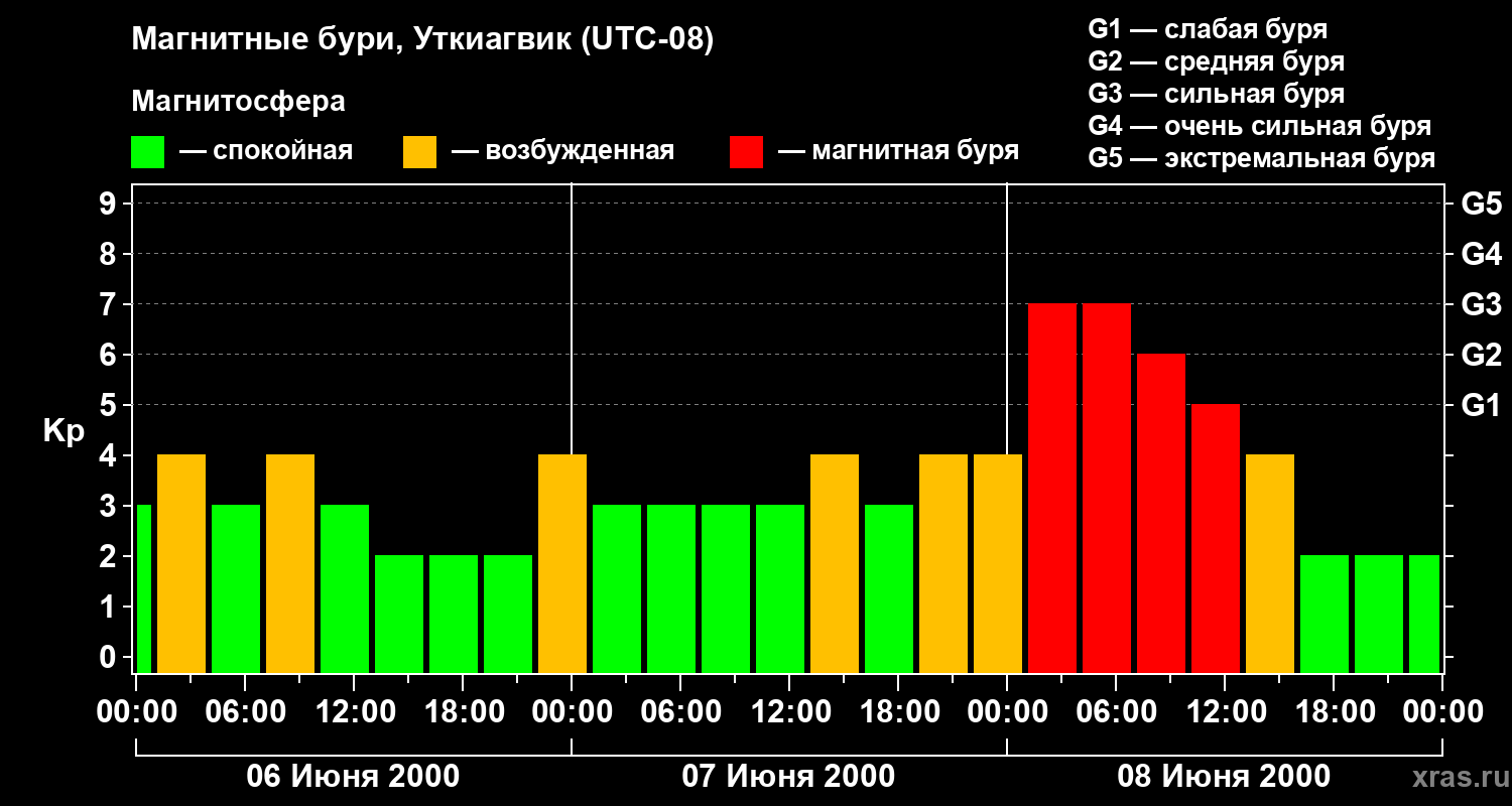 Магнитные бури в Уткиагвике 8 июня 2000 года