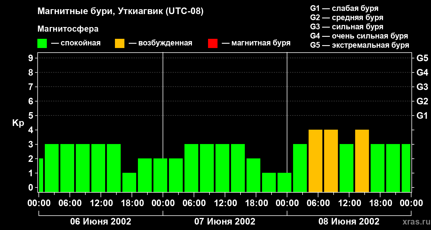 Магнитные бури в Уткиагвике — 8 июня 2002 года