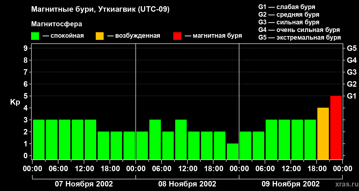 Магнитные бури в Уткиагвике — 9 ноября 2002 года