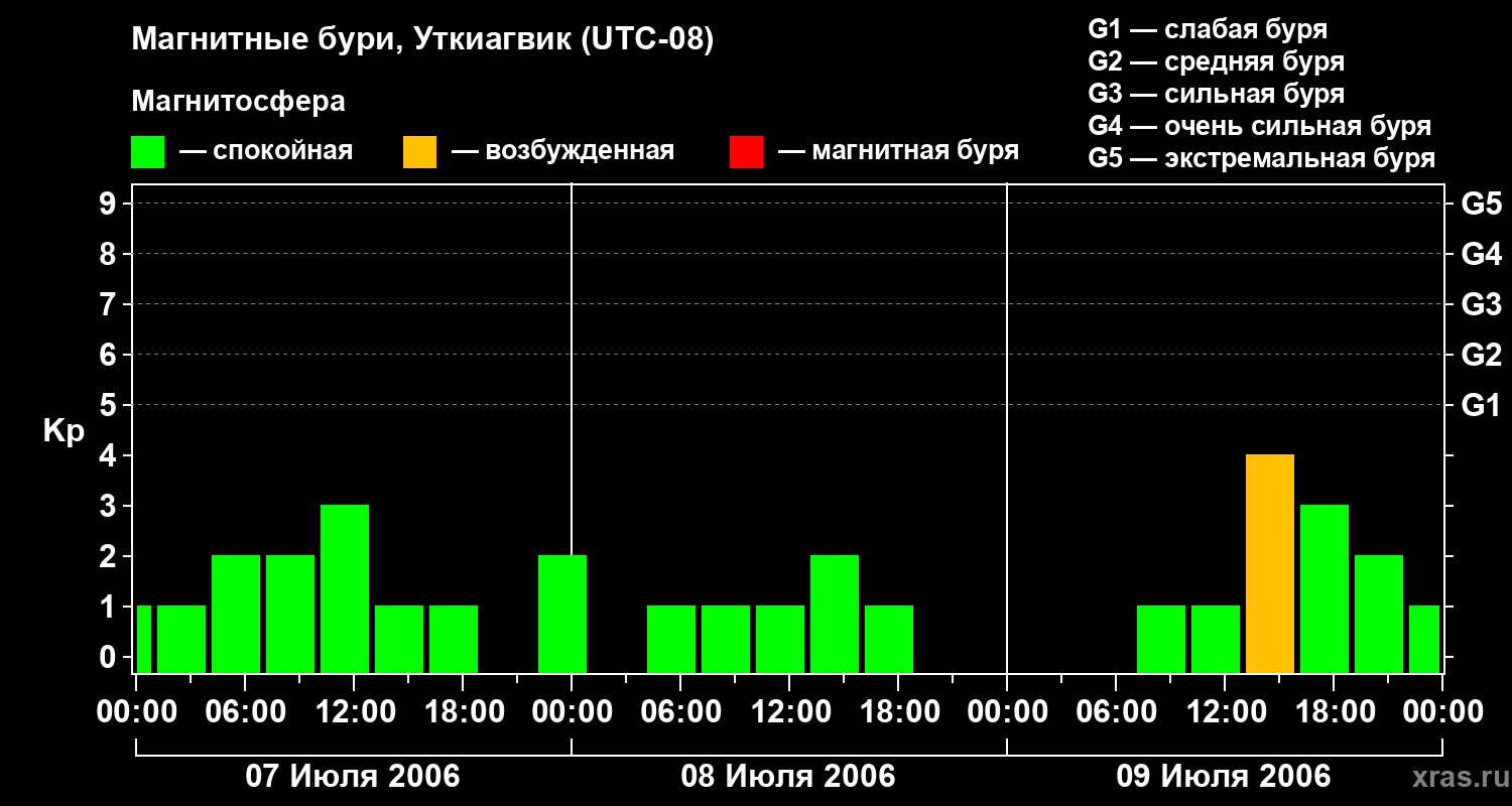Магнитные бури в Уткиагвике — 9 июля 2006 года