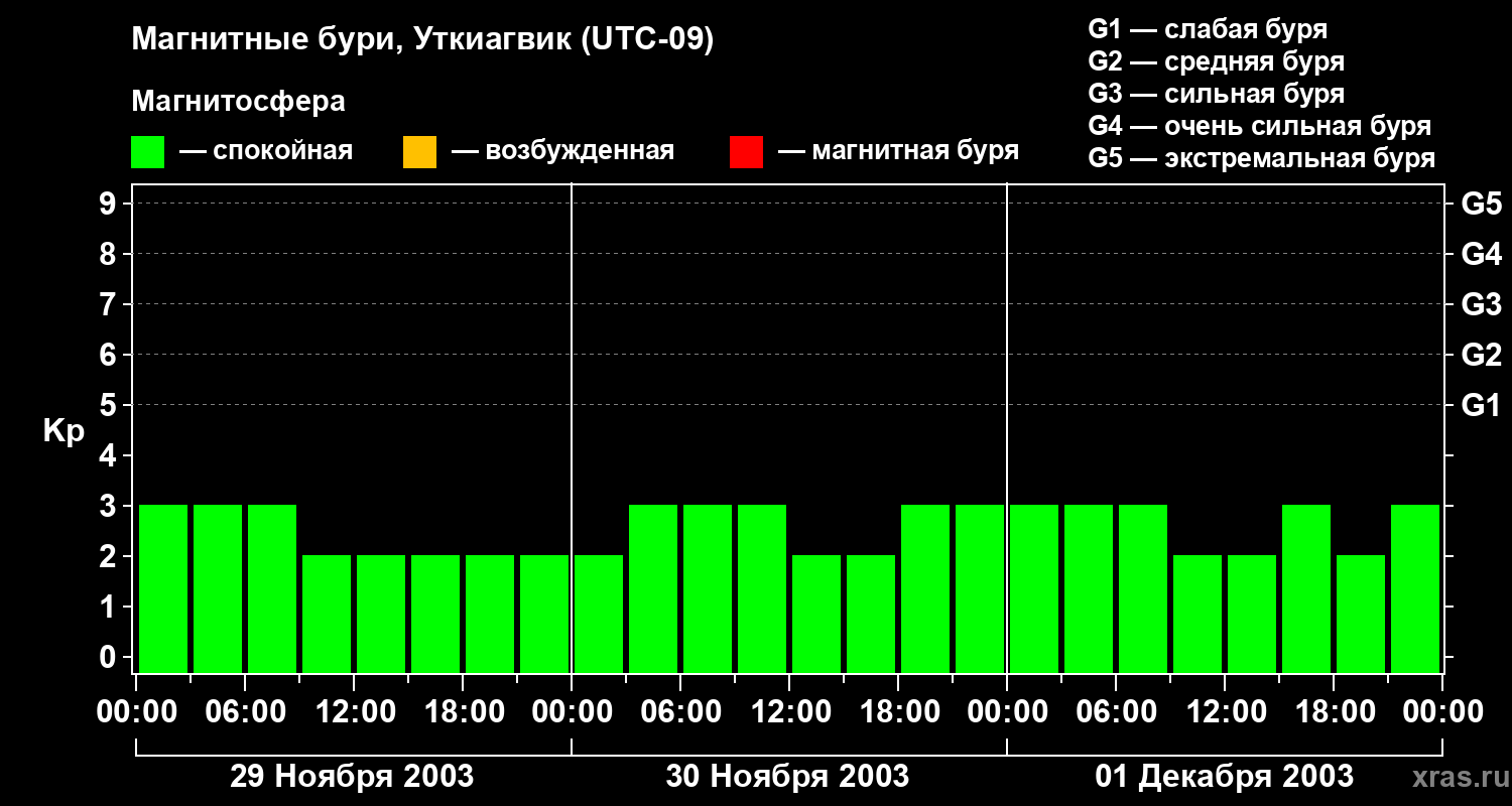 Магнитные бури в Уткиагвике — 1 декабря 2003 года