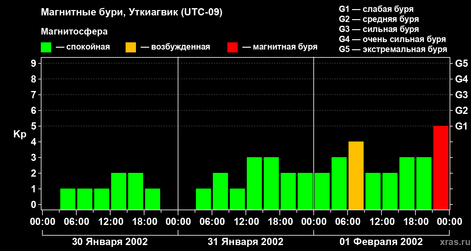 Магнитные бури в Уткиагвике — 1 февраля 2002 года