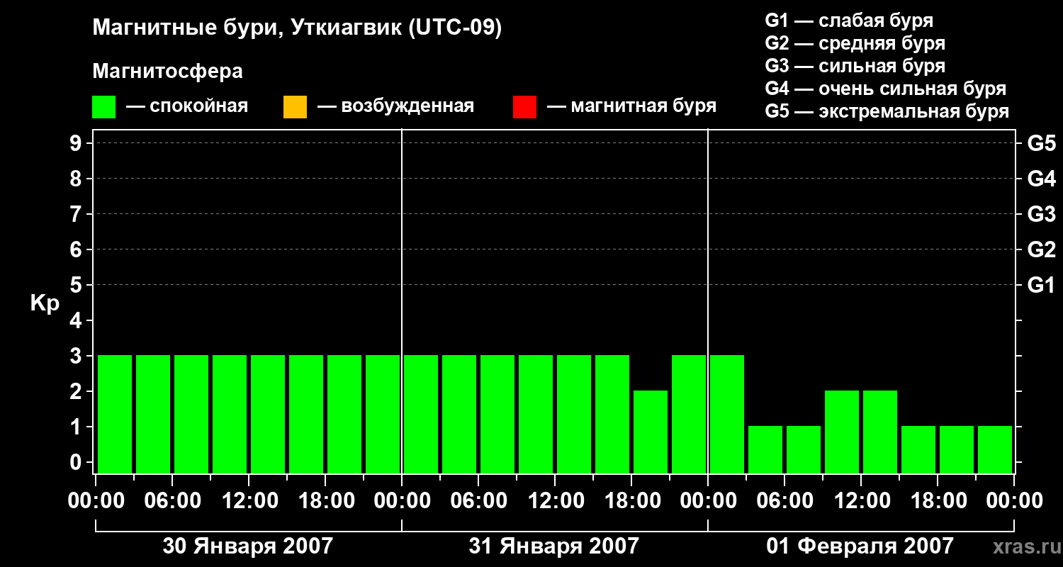 Магнитные бури в Уткиагвике — 1 февраля 2007 года