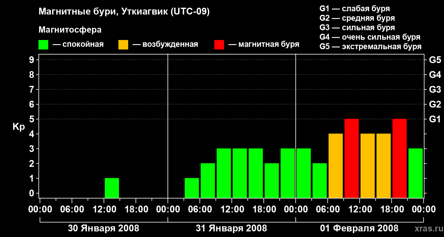 Магнитные бури в Уткиагвике — 1 февраля 2008 года