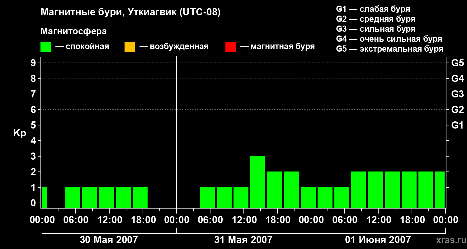Магнитные бури в Уткиагвике — 1 июня 2007 года