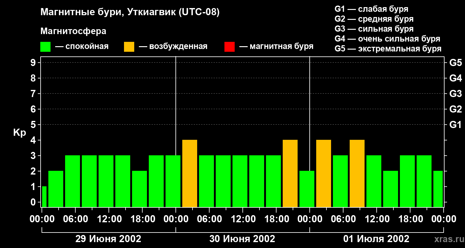 Магнитные бури в Уткиагвике 1 июля 2002 года