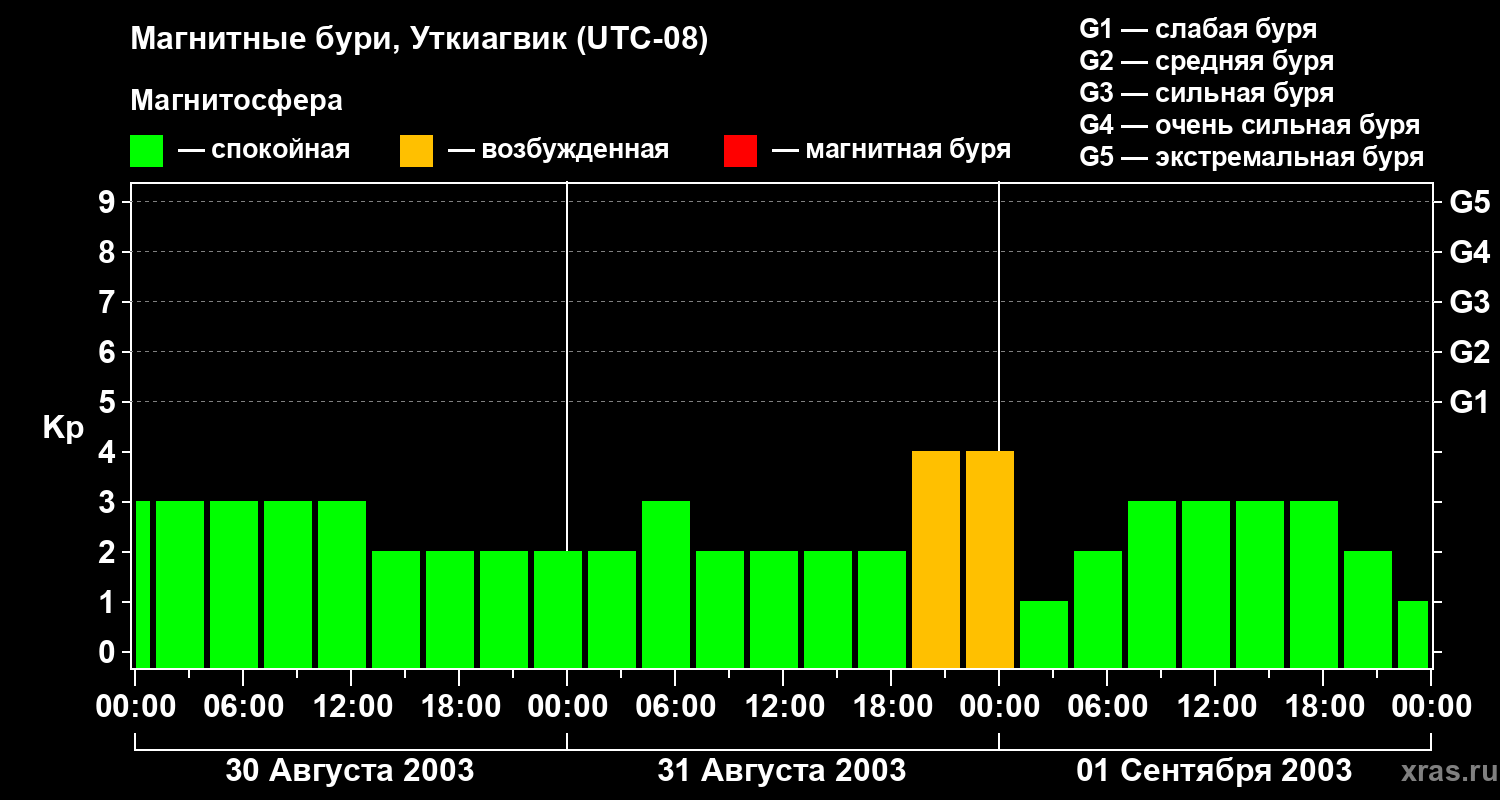 Магнитные бури в Уткиагвике — 1 сентября 2003 года